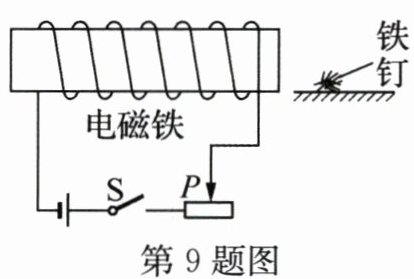 9. (盐城射阳一模)将自制的电磁铁连入如图所示的电路中,闭合开关 S,发现电磁铁的右端吸引了少量铁钉,为了使它吸引更多的铁钉,下列操作可行的是