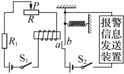 12. (2025·四川凉山)传感器在“物联网”中担负着信息采集的重要任务,可以实现“提醒”和“报警”功能。某型号的温度自动报警装置由热敏电阻作为传感器制作而成,其简易电路图如下。已知热敏电阻R₁的阻值随温度升高而减小,若电源电压保持不变,滑动变阻器R的滑片P在某位置不动,闭合开关S₁和S₂,此时装置未报警。下列说法正确的是(