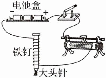 7. (2分)上分点四 如图是探究电磁铁的磁性强弱与哪些因素有关的实验,闭合开关,关于实验现象以下说法正确的是 (
