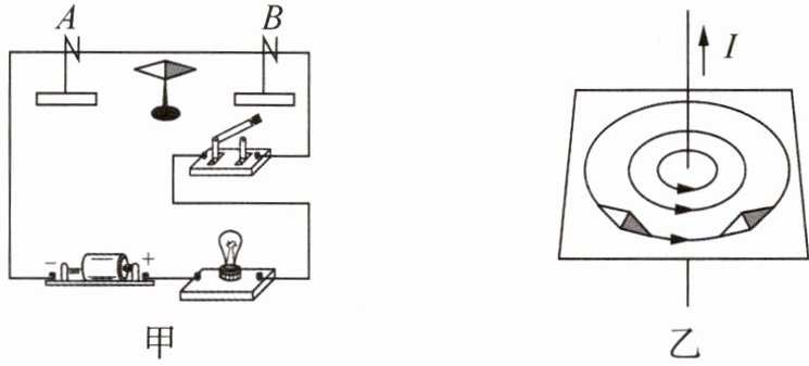 6. (10分)上分点五 如图甲所示,将一根直导线放在静止小磁针的正上方,并与小磁针平行. 接通电路后,观察到小磁针顺时针偏转.