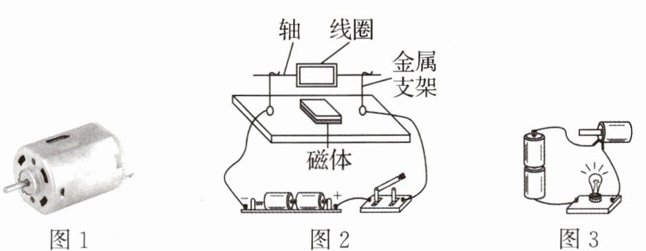 点二 电动机在我们的生活中扮演越来越重要的角色,大到电动汽车的应用,小到玩具电动汽车,无处没有它的身影。如图1为一玩具直流电动机,根据我们所学回答与之有关的问题。