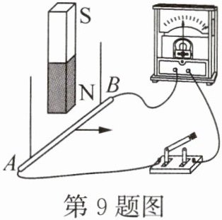 (2)导体AB静止时,虽闭合开关,但导体未切割磁感线,无感应电流产生,电流计指针不偏转;导体AB水平向右运动时,切割磁感线,产生感应电流,电流计指针偏转。