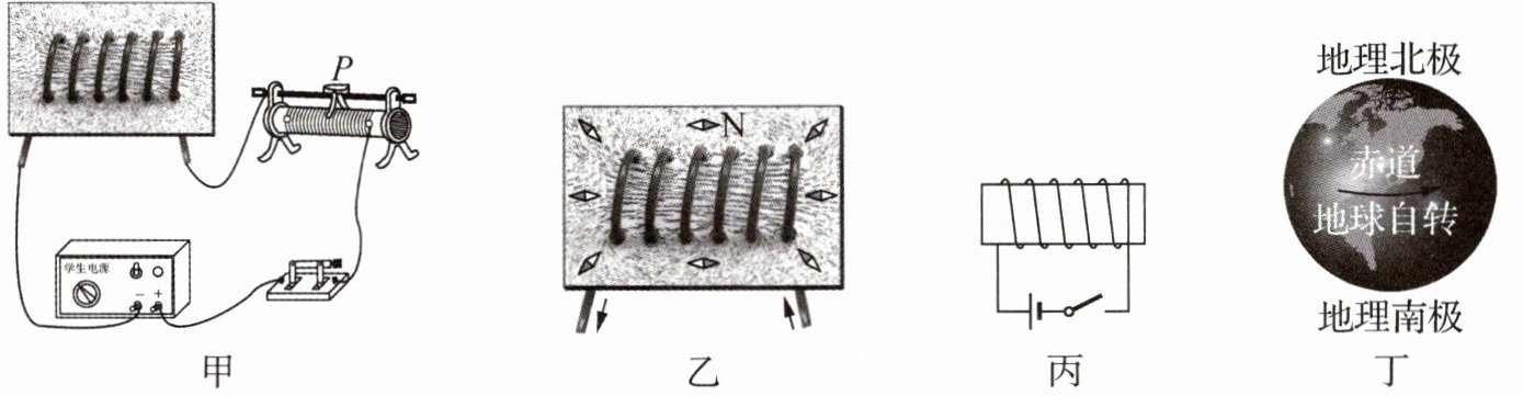(5) 地球周围存在磁场,有学者认为,地磁场是由地球带电自转形成圆形电流引起的,结合图甲、乙分析推断:图丁中地球的圆形电流方向与地球的自转方向