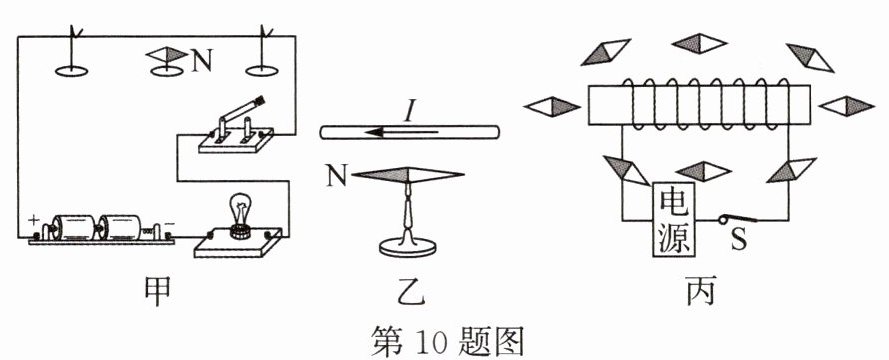 答案:10.(1)地磁场 通电导线周围存在磁场 (2)逆时针有关 (3)正极 (4)AD