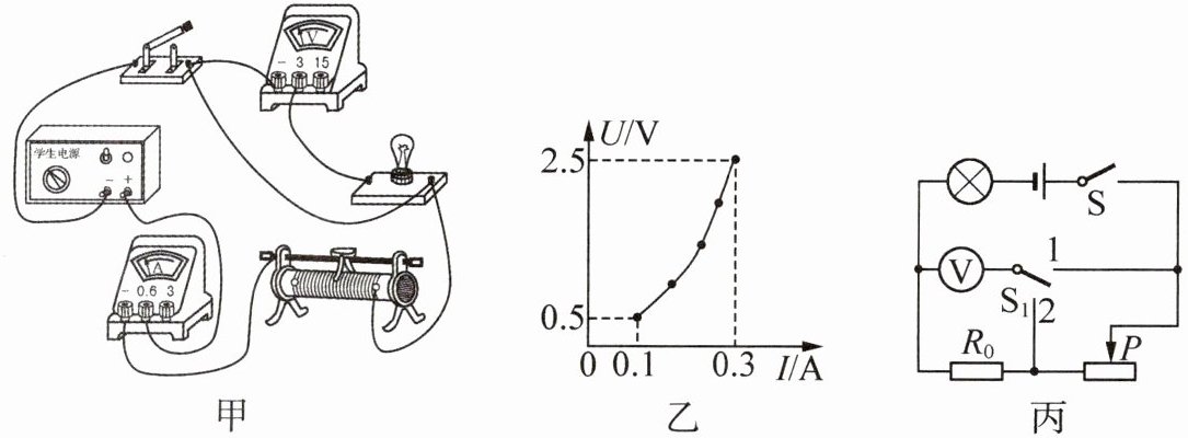 (5) 爱动脑筋的小明想出另一种测量该小灯泡额定功率的方法,设计了如图丙所示的电路(电源电压为4.5V,灯泡的额定电压为2.5V),请将以下实验步骤补充完整.