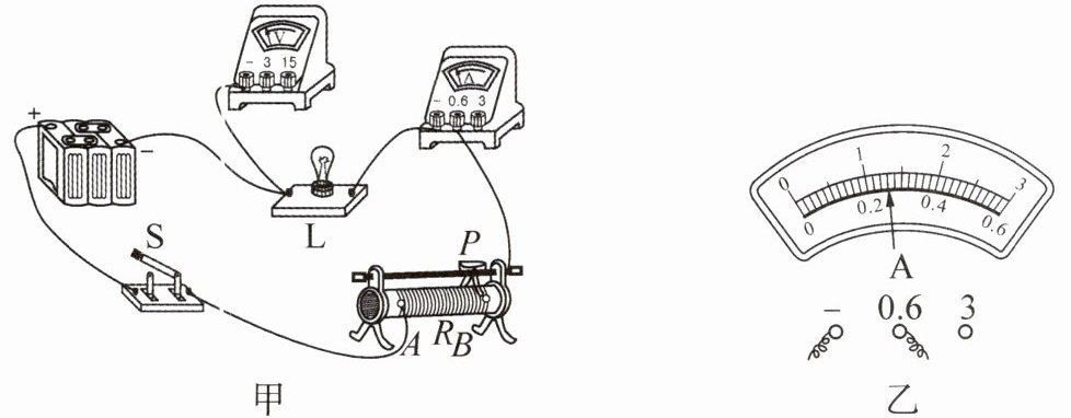 (3) 排除故障后,继续实验,获取实验数据。当电压表示数为 2.5 V 时,电流表表盘如图丙所示,通过计算可知,小灯泡 L 的额定功率为