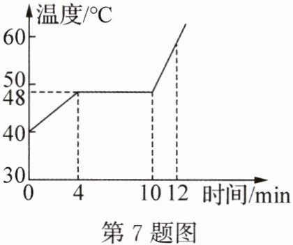 7. (2025·甘肃兰州·3分)如图所示是对某种固态物质加热使其变成液态时温度随时间变化的曲线,加热过程中物体在相同时间内吸收的热量相同.请根据图像回答: