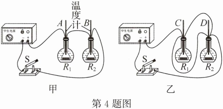 (4) 在甲、乙两图电路通电时间相同的条件下,温度计