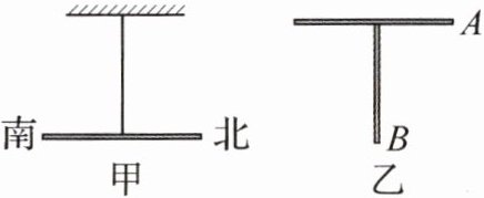 (4) 将其中两根钢针按图乙放置,若$ B $钢针被吸引,可鉴定$ A $钢针