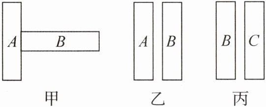 外形相同的钢条 $ A $、$ B $、$ C $,按图示甲、乙、丙三种方式接触,甲、乙中钢条间有较大的吸引力,丙中钢条间有较大排斥力,则下列推断正确的是(
