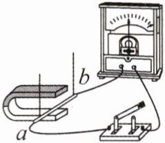 (2) 实验中发现,当导体 $ ab $ 向左运动时,电流表指针向右偏转,当导体 $ ab $ 向右运动时,电流表指针向左偏转,说明