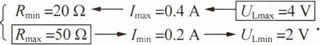 滑动变阻器两端的电压:$U_{Rmax}=U - U_{Lmin}=12 V - 2 V = 10 V$,$U_{Rmin}=U - U_{Lmax}=12 V - 4 V = 8 V$。