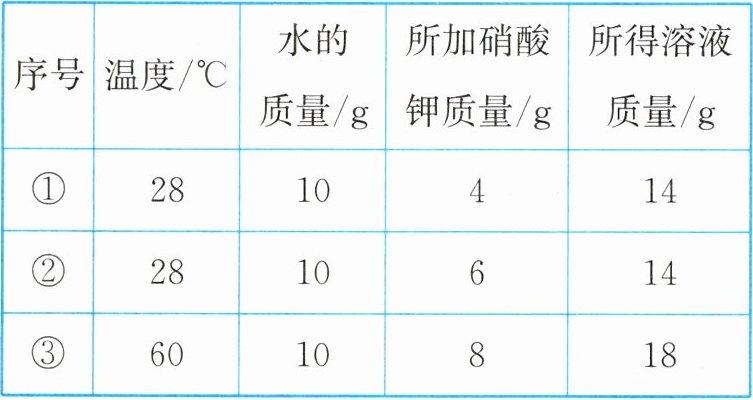 9. 配制硝酸钾溶液时得到如表数据,根据表中数据分析,不正确的是(