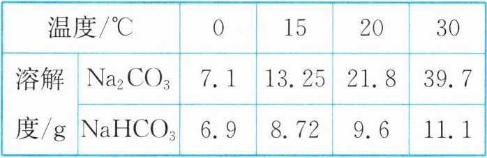 碳酸钠和碳酸氢钠的溶解度如表所示。