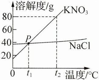 A.P点表示t₁℃时硝酸钾和氯化钠的溶解度相同