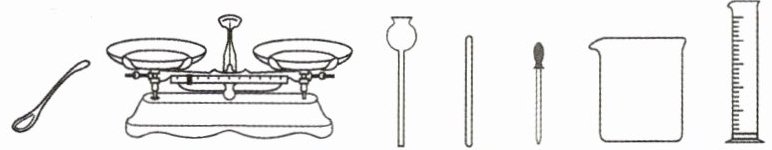 仪器:托盘天平、滴管、烧杯、玻璃棒、量筒(规格有25mL、50mL和100mL)。