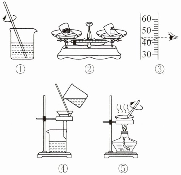 B.实验①⑤中,玻璃棒的作用均是搅拌加快实验速率