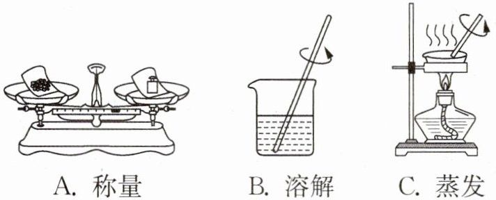 答案:8. (1)蒸发 氯化钠的溶解度受温度变化的影响较小 (2)过滤 玻璃棒 (3)滤纸没有紧贴漏斗内壁(或滤纸与漏斗内壁之间有气泡等,答案合理即可) 较多固体 (4)饱和 (5)94 AEB > (6)精盐不纯(答案合理即可)