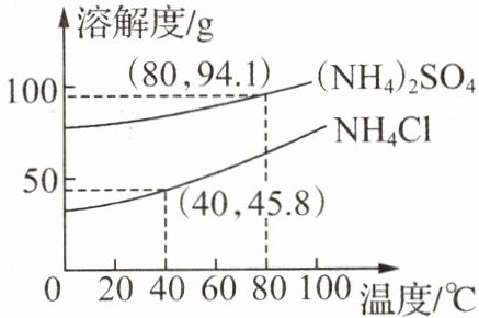 D.$80\ \mathrm{°C}$ 时将 $94.1\ \mathrm{g}\ (\mathrm{NH}_4)_2\mathrm{SO}_4$ 加入 $200\ \mathrm{g}$ 水中,会形成不饱和溶液