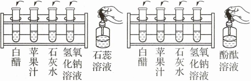 对比法 分别将石蕊溶液和酚酞溶液滴入如图所示的溶液中(已知氢氧化钠溶液呈碱性),下列说法错误的是(
