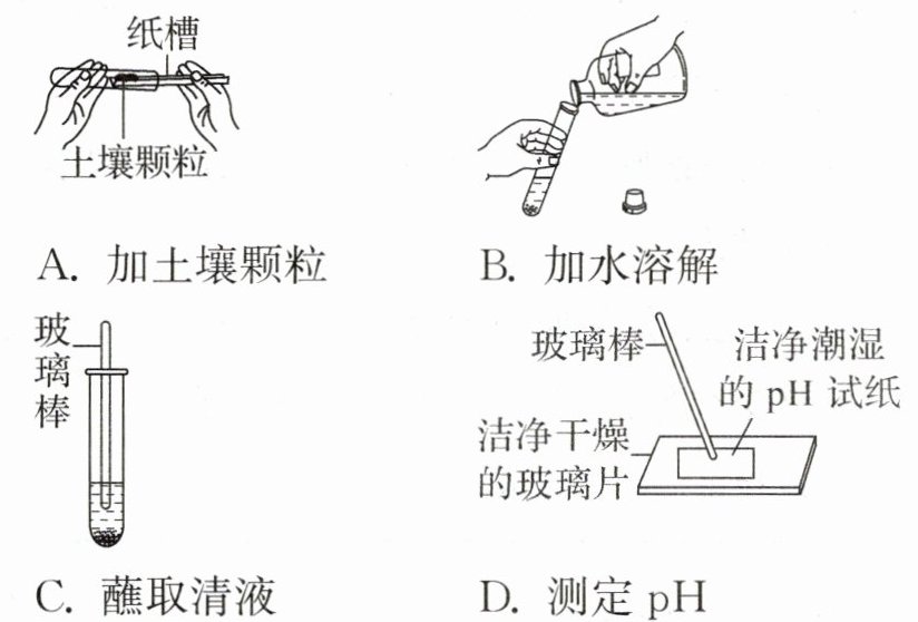 1. (2025·四川遂宁改编)科学种田,助力乡村振兴。为探究土壤酸碱性对农作物生长的影响,丽丽同学在实验室测量土壤样品酸碱度时的操作不正确的是(