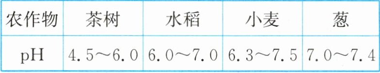 2. (2024·宁夏)几种农作物适宜生长的土壤的pH范围如下表,某地区土壤呈弱碱性,最不适宜种植的是(
