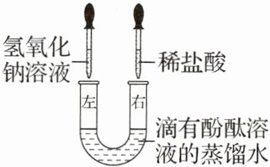 10. (2025·四川泸州模拟)如图所示,${U}$形管中是滴有酚酞溶液的蒸馏水,向左、右两管中同时逐滴滴加一定量的氢氧化钠溶液和稀盐酸,充分反应后${U}$形管中溶液全部呈无色。下列说法不正确的是(