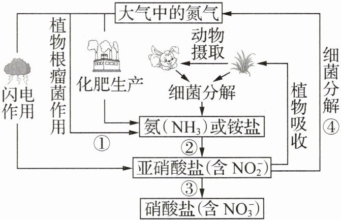(1) 将大气中的氮气转化为氮的化合物的过程叫作氮的固定。①②③④中属于氮的固定的是