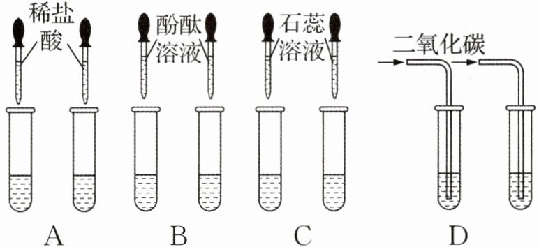 答案:4. D 解析:鉴别两种碱,需要借助其性质差异,所以要考虑钠离子和钙离子的性质差异。盐酸虽然与氢氧化钠和澄清石灰水都反应,但是现象无明显不同,无法鉴别,故A错误;酚酞遇碱性溶液变红,石蕊遇碱性溶液变蓝,氢氧化钠溶液和澄清石灰水都呈碱性,现象相同,无法鉴别,故B、C错误;二氧化碳与澄清石灰水反应生成碳酸钙白色沉淀,与氢氧化钠反应无明显现象,可以鉴别,故D正确。