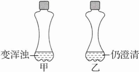 2. (2024·内蒙古包头)向甲、乙两个等体积充满 CO₂的软塑料瓶中,分别倒入等体积的澄清石灰水与 NaOH 溶液(密度近似相等),拧紧瓶盖振荡后,现象如图所示。下列说法错误的是(