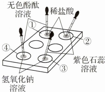 1. 如图所示,向点滴板①~④滴孔中分别滴入指示剂后,①②③④滴孔中溶液显示的颜色依次是(