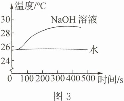 (6)利用传感器测定 NaOH 溶液与 CO₂反应过程中温度的变化,测定结果如图 3 所示,水为对照组。由图 3 可知,NaOH 与 CO₂的反应属于