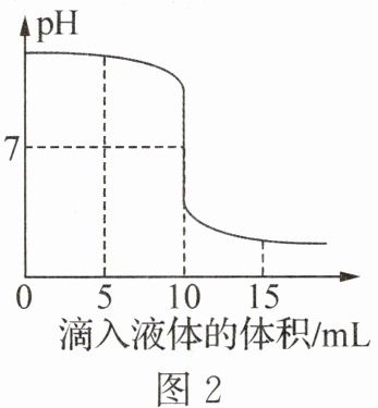 25℃时,利用图 1 装置测定 NaOH 溶液与稀盐酸反应过程中 pH 的变化,测定结果如图 2 所示(控制反应过程中温度不变)。
