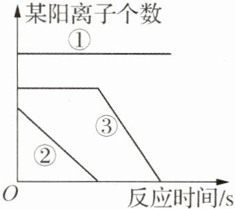 解析:向硝酸铝、硝酸亚铁和硝酸银的混合溶液中加入一定量的锌片,锌先与硝酸银反应,再与硝酸亚铁反应,而硝酸铝不参与反应,因此先减少的阳离子是银离子,后来减少的阳离子是亚铁离子,一直不变的阳离子是铝离子。(1) 根据分析并结合题图可知,②代表的离子为${Ag^{+}}$。(2) 由题图可知,银离子和亚铁离子的个数最终都减为零,说明硝酸银和硝酸亚铁都完全反应,但无法确定锌是否有剩余,因此最终得到的滤渣中一定含有银和铁,可能含有锌。