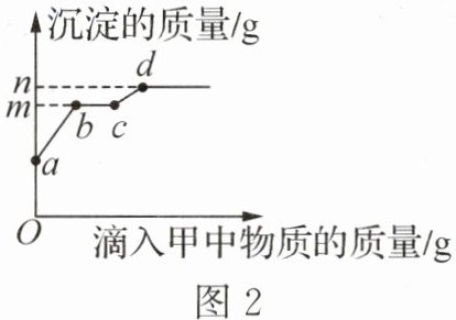 4. (2025·湖北武汉模拟)某化学实验小组探究碳酸钠的化学性质,进行图1甲、乙所示实验。为了探究甲、乙实验所得物质的成分,将乙实验中所得物质全部倒入烧杯中,进行图1中的丙实验,实验中测得烧杯内沉淀的质量与滴入甲中所得物质质量的变化关系如图2所示。下列说法错误的是(