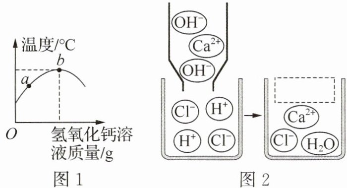 3. (2025·黑龙江哈尔滨模拟)图1是将氢氧化钙溶液逐滴加入一定量稀盐酸中,用数字化仪器对反应过程中溶液的温度进行实时测定,得到图1曲线,图2是该反应的微观示意图。下列说法错误的是(