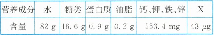 ① 表中“X”是指六类基本营养素中的