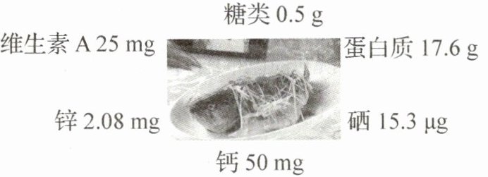 情境素材 鱼肉含有丰富的营养成分,是人们餐桌上常见的一道美食。每 100 g 鱼肉中含有的部分营养成分如图所示。下列表述错误的是 (