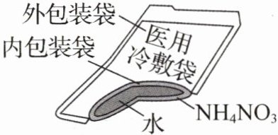 13. (2025·吉林长春)某医用冷敷袋的内部结构如图所示。使用时挤压冷敷袋,内包装袋破裂,里面的水接触到夹层中的 NH₄NO₃,温度降低。下列说法错误的是(