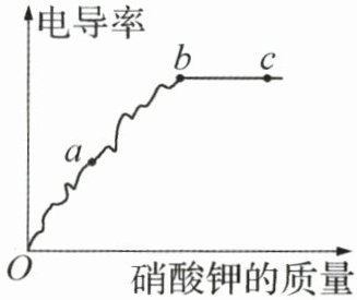 11. 电导率是衡量溶液导电能力大小的物理量,相同条件下,电导率与离子浓度(单位体积内的离子数)成正比。20℃时,小苏向100mL水中分次加入少量硝酸钾,均充分搅拌,并测得溶液电导率随加入硝酸钾质量的变化情况如图所示。下列分析正确的是(