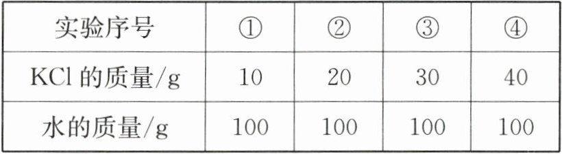 12. (2025·河南模拟)20℃时,按下表数据配制KCl溶液。如图是KCl的溶解度曲线。下列关于实验①~④所得溶液的说法不正确的是(