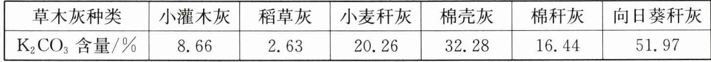 【查阅资料】① 常见草木灰钾含量(以碳酸钾表示)如下表所示。