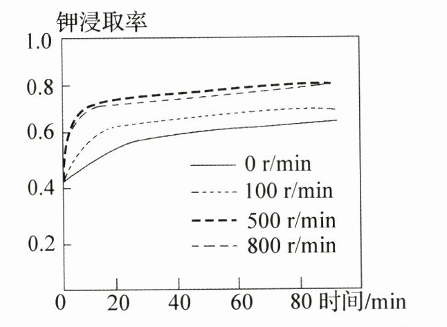 解析:(1)题图1实验中,用60℃的温水而不用冷水浸洗的原因是碳酸钾的溶解度随温度的升高而增大,相同条件下,60℃的温水比冷水溶解碳酸钾多。(2)根据题图2,搅拌器转速控制在每分钟500r,浸取时间为20min,比较适宜。(3)装置C中氢氧化钠与二氧化碳反应生成碳酸钠和水,反应的化学方程式为2NaOH+CO₂=Na₂CO₃+H₂O。(4)称量题图3装置C中反应前后烧杯和其中溶液的总质量,增重0.88g,说明反应生成二氧化碳的质量为0.88g。设草木灰中碳酸钾的质量为x。
