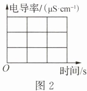 (3) 室温下,向 $ 100 \mathrm{ mL} $饱和澄清石灰水中持续通入二氧化碳(忽略二氧化碳与水反应产生的碳酸),请根据所学知识和提供的相关资料,预测并在图 2 中画出电导率变化趋势。