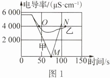 材料二:电导率传感器用于测量溶液的导电性强弱,能反映离子浓度大小。相同温度下,同种溶液电导率越大,离子浓度越大。