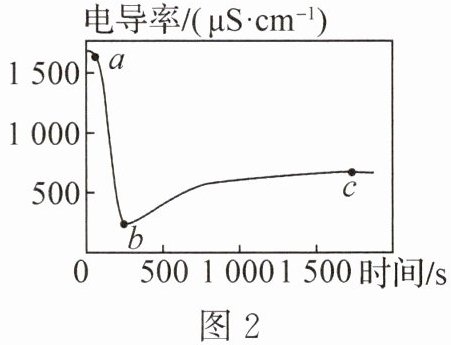12. (2025·江苏连云港模拟改编·2分)一定温度下,溶液的导电能力与离子的浓度和性质有关。进行图 1 实验,测得烧杯中溶液电导率变化如图 2 所示(忽略烧杯中溶液体积的变化)。下列有关说法不正确的是 (