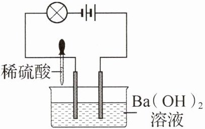 点三 实验课上,老师演示了如图所示的实验。向烧杯中缓缓滴加稀硫酸,观察到小灯泡的亮度变化情况为亮→暗→熄→亮[已知 2HCl + Ba(OH)