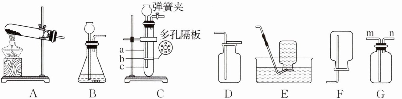 答案:2. (1) $ 2KMnO_{4} \xlongequal{△} K_{2}MnO_{4} + MnO_{2} + O_{2} \uparrow $ AE (2) $ CaCO_{3} + 2HCl = CaCl_{2} + H_{2}O + CO_{2} \uparrow $ 可以随时控制反应的发生和停止 a (3) n