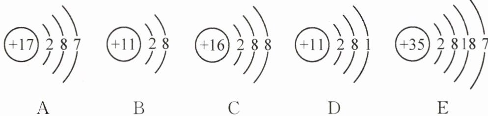 ②A为氯原子的结构示意图,与氯原子的化学性质最相似的是