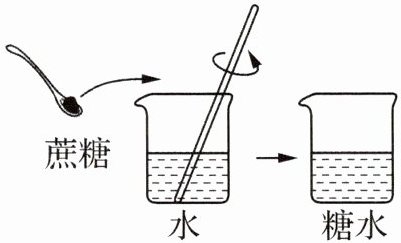 7. (2025·河南郑州模拟改编·4分) 如图所示,将蔗糖加入水中,用玻璃棒搅拌,蔗糖“消失”在水中形成糖水。